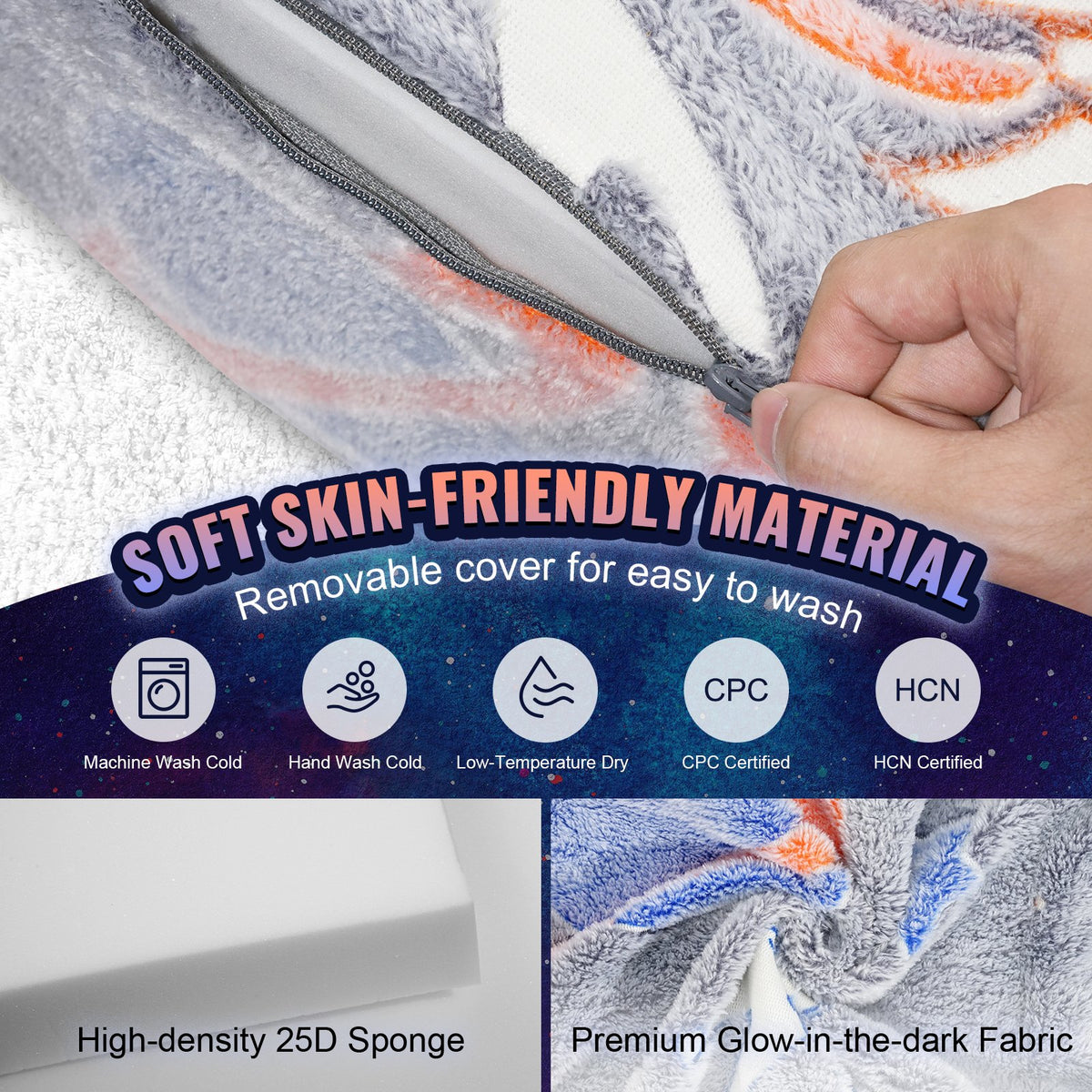 Features & Details High-Quality Materials: This kids couch is specifically made for kids, meeting CPC certification for safety. We use soft, skin-friendly fabric for the cover, and the filling consists of high-density 25D sponge for quick rebound. Multiple Combinations: With various geometric pieces, the kids play couch allows kids to create diverse shapes beyond the common combinations shown in the manual, sparking creativity and critical thinking. Soft And Safe: The kids chair is made from quality snowflake fabric, which are soft, skin-friendly and lightweight, kids can move it to where they want. For added security, we use high-quality zippers that are durable and strong, ensuring children can't easily tear them. Imagination Booster: The kids chair features glow-in-the-dark fabric that absorbs light during the day and releases it in the dark, which sparks children's curiosity and exploration, adding fun to children's room. Easy To Remove & Clean: Equipped with durable child-friendly zippers, the toddler sofa cover is easy to remove. It can be machine or hand-washed in cold water. Using dedicated detergent can extend its lifespan, keeping it looking new for years.